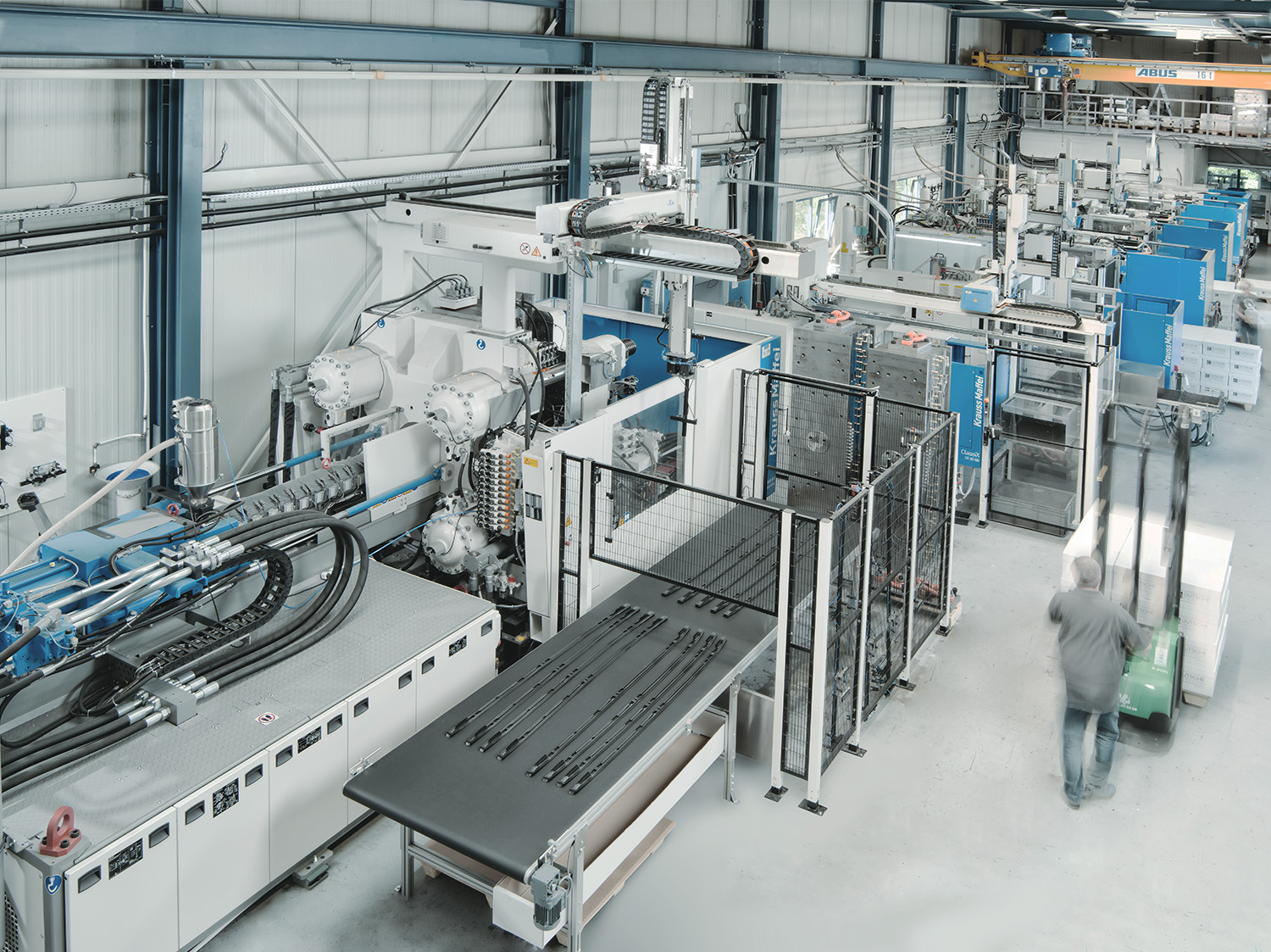 Mit unseren derzeit ca. 40 Mitarbeitern fertigen wir anspruchsvolle technische Kunststoffteile mit allen thermoplastischen Kunststoffen im 1K- und 2K-Verfahren. Wir verfolgen kontinuierlich die Modernisierung und Erweiterung unseres Maschinenparks. Durch den Einsatz fortschrittlicher Maschinen- und Robotertechnologie vom Hersteller KraussMaffei gewährleisten wir eine effiziente, qualitätssichernde und automatisierte Fertigung von hochwertigen Kunststoffteilen.
